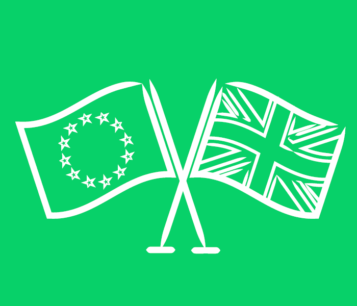 Euro and UK flag illustration.
